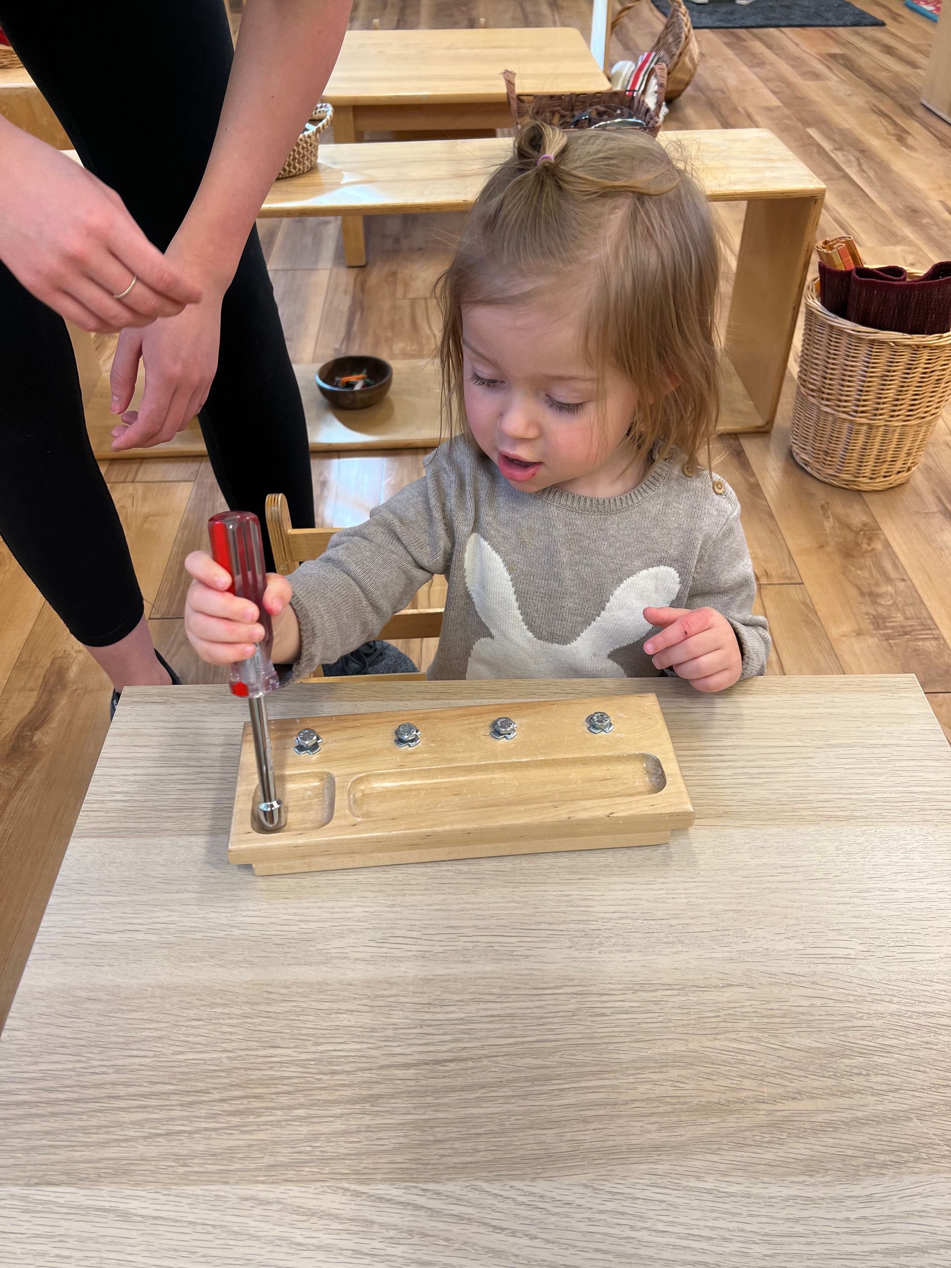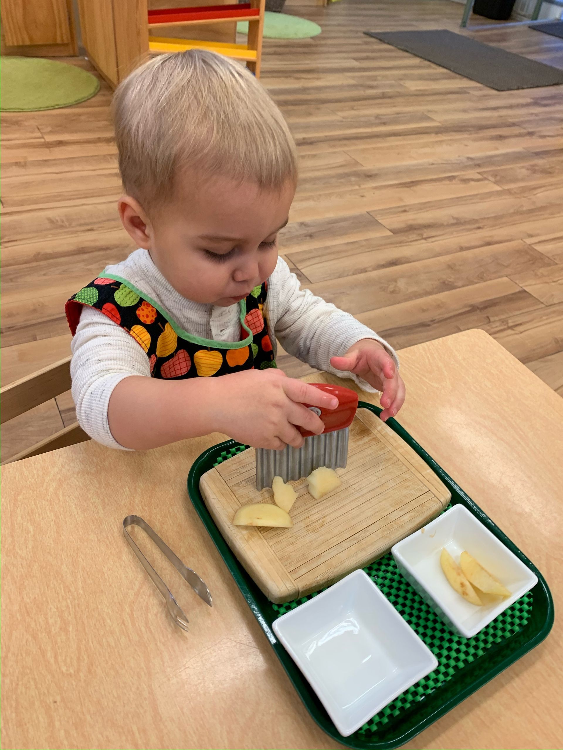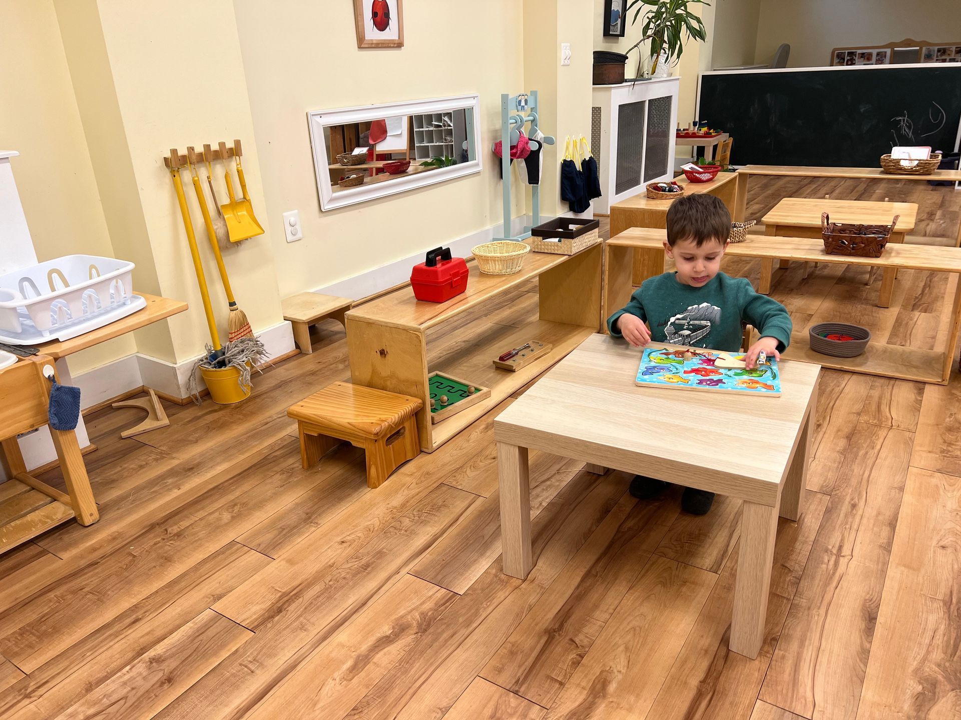 Where so many early childhood programs are chaotic and overwhelming, parents are often surprised to see the peaceful tone of our toddler classroom. The calm atmosphere and lack of distraction helps her to develop impulse control and concentration, planting the seeds for learning in this classroom and beyond.