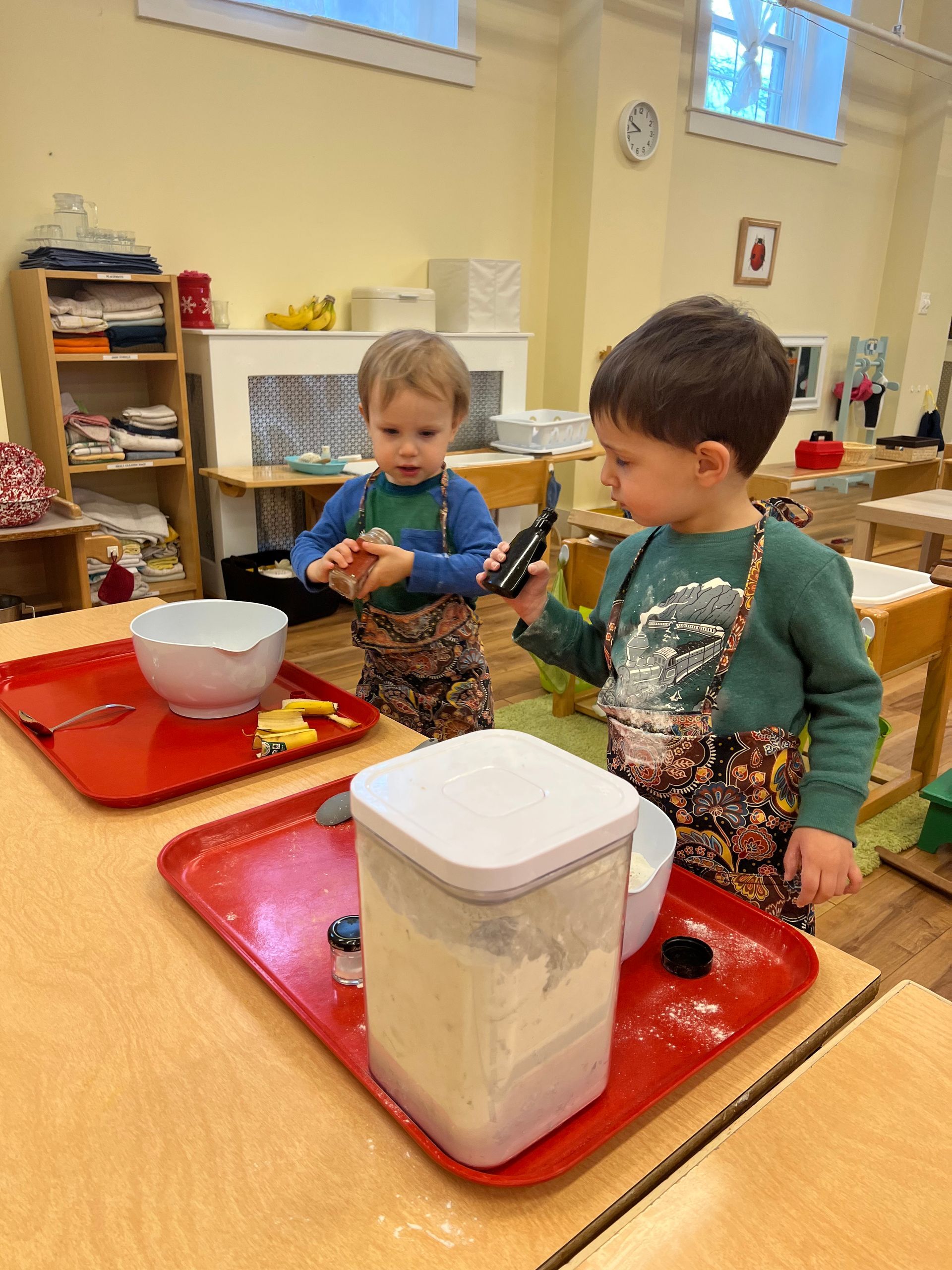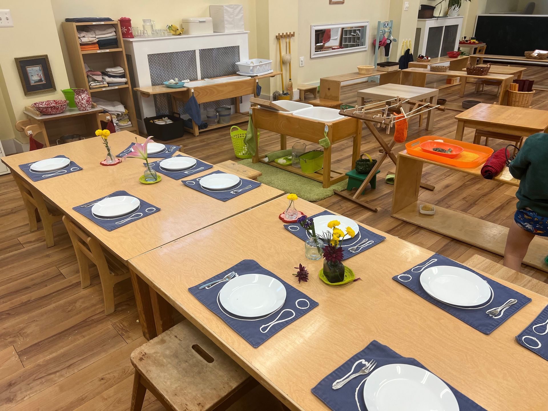 The toddler classroom is a caring and respectful community. Children gain self-care skills through the development of their senses and concentration. The child is able to work independently with the materials and is free to explore and move about the room.