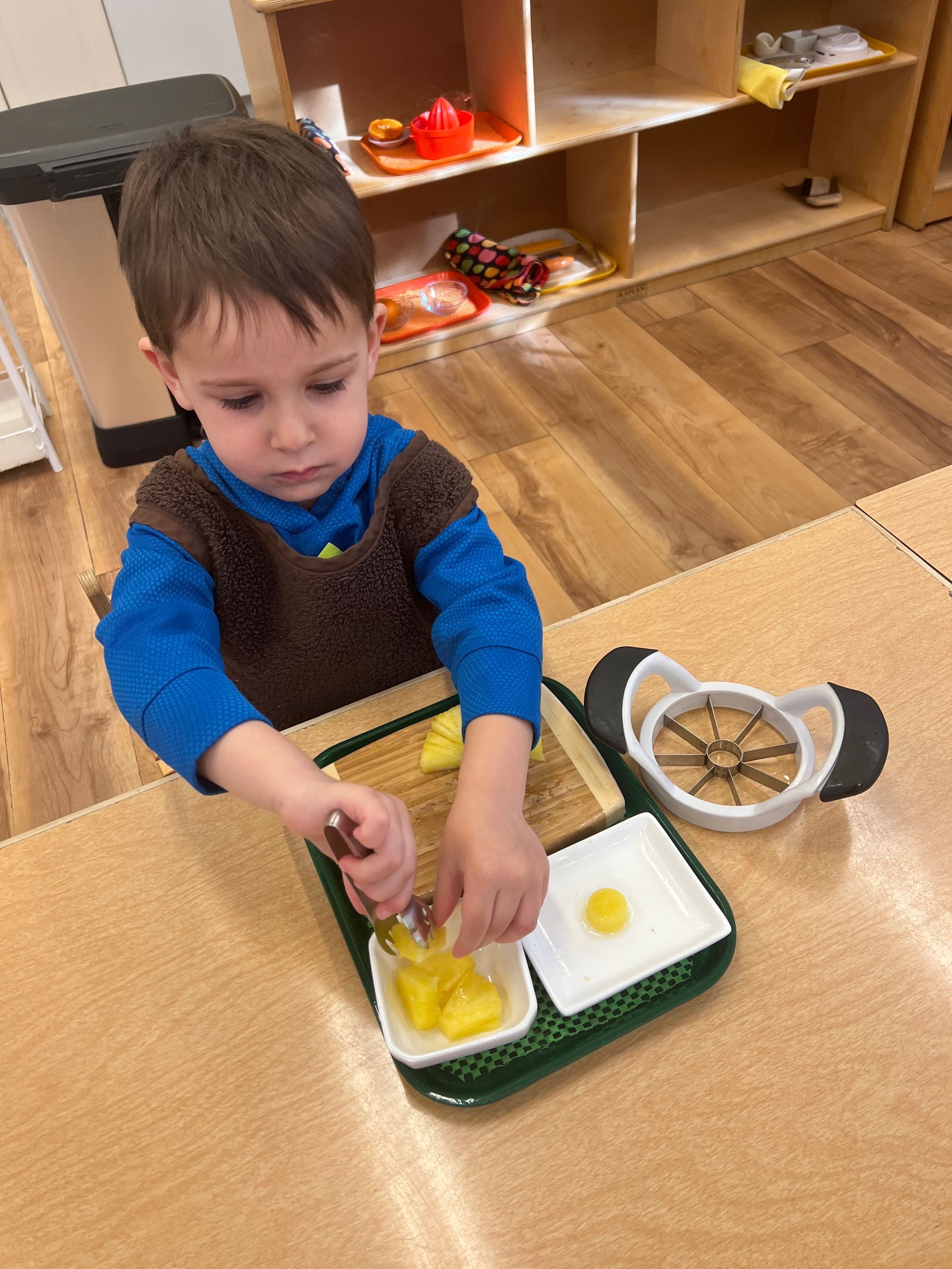 Your child has a natural drive to be independent which we encourage by creating an environment where everything is just the right size for her to do things on her own. Child sized tools that fit her tiny hands allow her to prepare a snack and serve it to friends. A miniature broom empowers her to clean up on her own. She is taught the skills of self-care and toilet training. Your child learns a set of concrete life skills and self-confidence – but, more importantly, develops the belief that she can choose to make a genuine impact on her world.